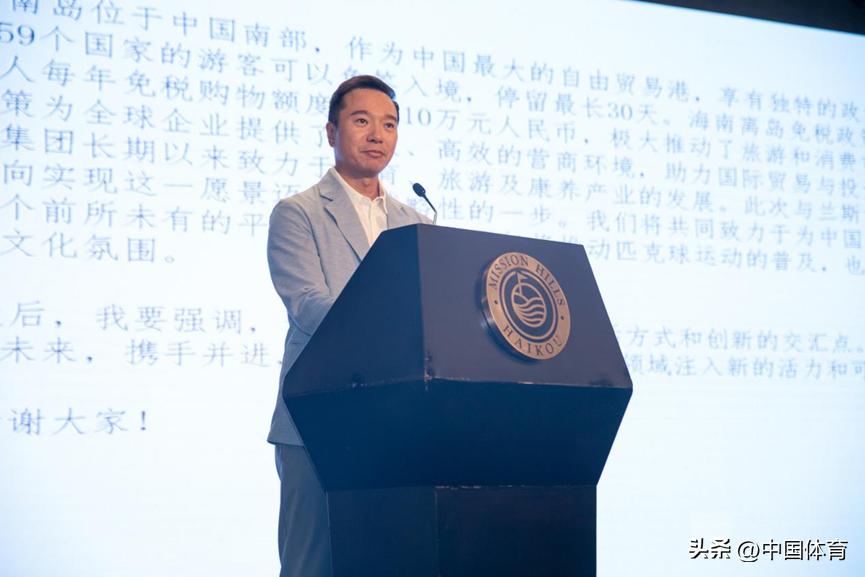 蘭斯博集團總裁袁家龍在致辭中表示,推動匹克球發展有兩大要素,一是配套設施齊全的專業場地,二是優秀的專業教練團隊。多年來蘭斯博集團一直在中國尋找合適的場地建立一個專業的匹克球基地,最終決定落地海口觀瀾湖。今天的簽約儀式是中國匹克球運動發展邁出里程碑式的重要一步,我們將依託觀瀾湖運動員酒店、體能訓練中心、醫療康復中心等豐富的配套,在此建立世界最大的室內匹克球館,並引入世界匹克球聯合會(WPF)、國際匹克球專業教授聯盟(IPTPA)的專業培訓體系及資源,希望以海南爲窗口,以中國爲中心,將亞洲匹克球運動推向新高。