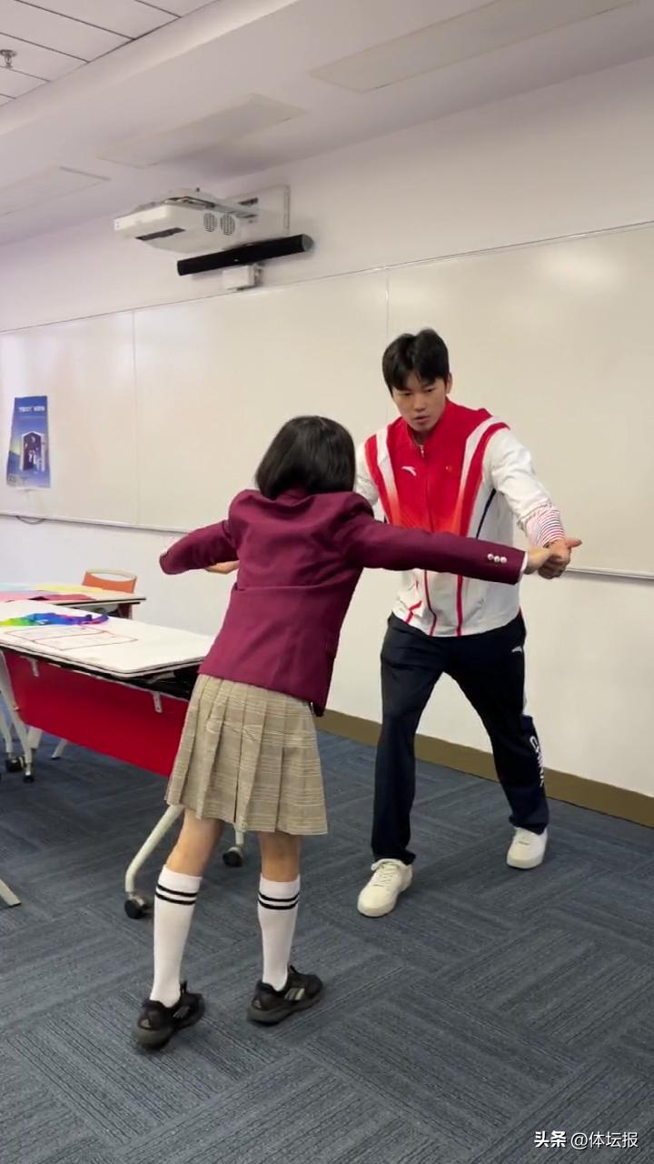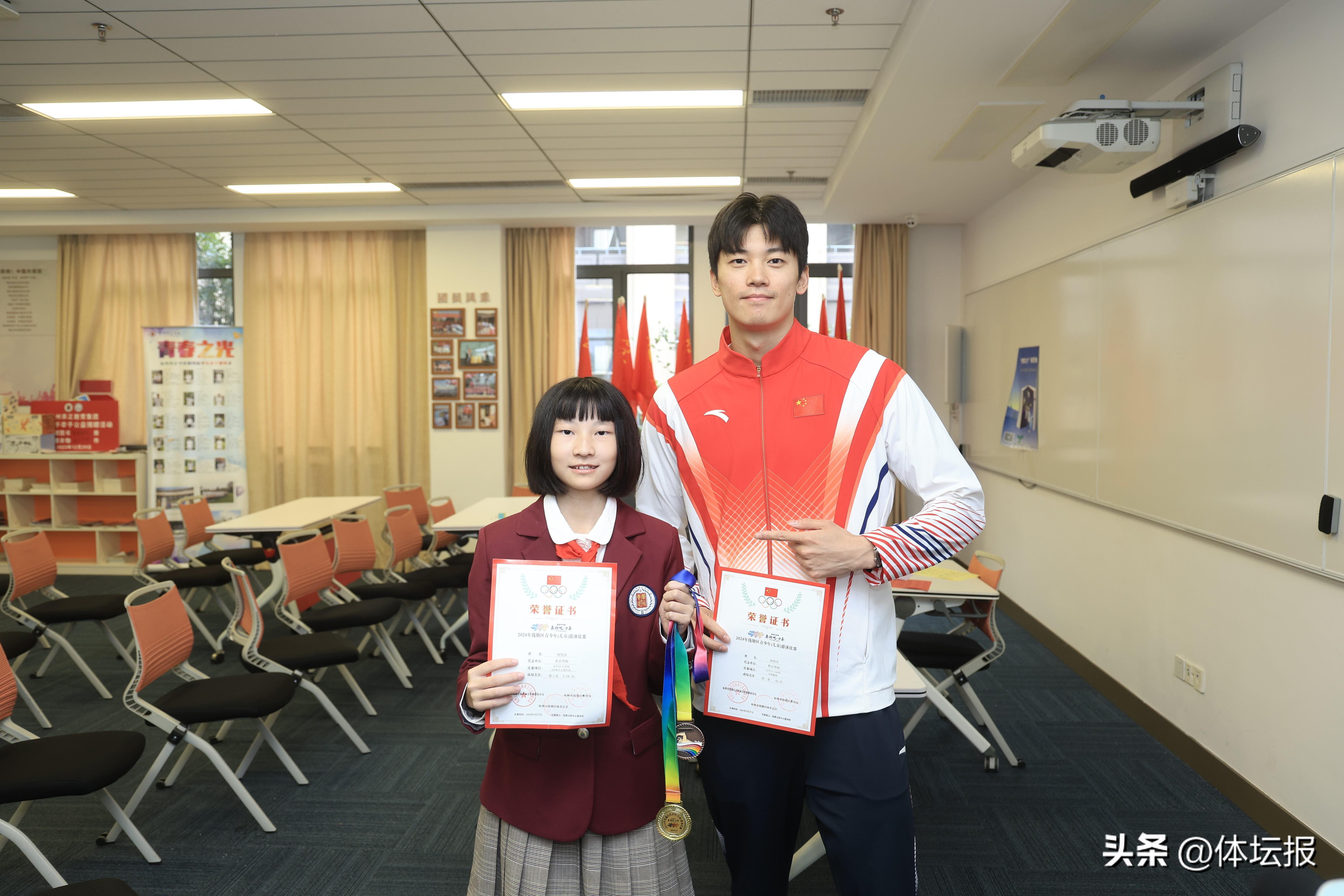 這一次,學校助何怡樂圓夢,讓她能夠近距離見到汪順,還進行了一對一交流。汪順對這位學習、體育成績雙優的小姑娘不吝稱讚,在何怡樂提出專業性問題時,還主動演示,手把手幫她摳動作和細節。