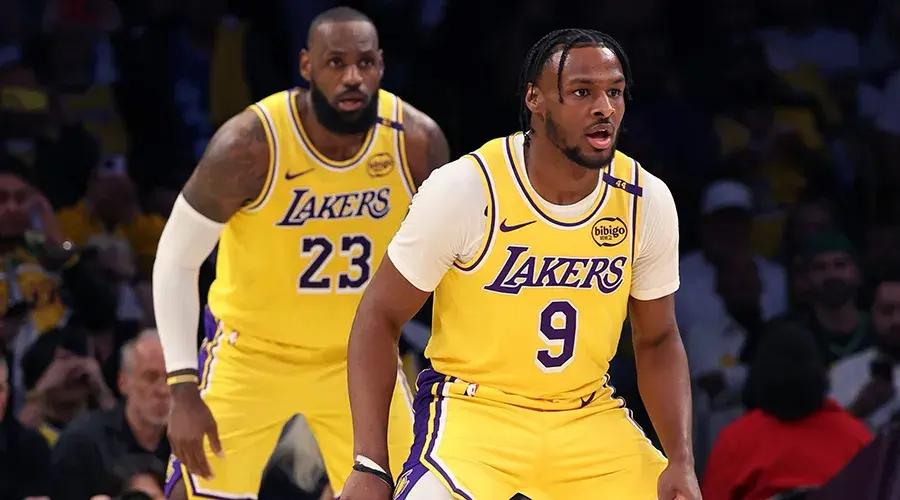 比賽打到第二節還剩4分鐘,湖人領先16分,詹姆斯和布朗尼同時在場邊換衣服準備登場,二位風輕雲淡目視前方,眼神飄忽不定卻絕不交錯,彷彿警察和他的線人在公開場合相遇一般力求冷靜與自然。但“父子同臺”是一場事先宣揚了差不多4年的大戲,所有人都在等待這一刻,除非出現什麼人力無法抗拒的意外,所有人都明白這一刻會在2024-25賽季第一場比賽中發生,而不是詹姆斯所謂的“不管何時”,也不會是雷迪克的“沒有最終確定」。