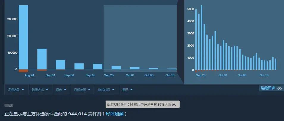 如果要以銷量算,時至今日,《黑神話:悟空》僅在Steam平臺的銷量便已經突破2100萬份;如果要以口碑算,它在Steam平臺上有多達94萬條評價,好評率高達驚人的96%;如果要以遊戲質量而論,幾乎每個玩過它的人都對它讚不絕口,在提出一些《黑神話:悟空》的缺憾之後,依然願意承認它是一部不可多得的傑作,其中也包括大量的遊戲從業者。
