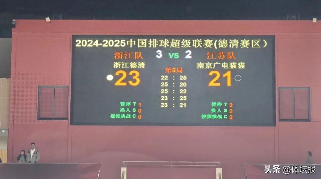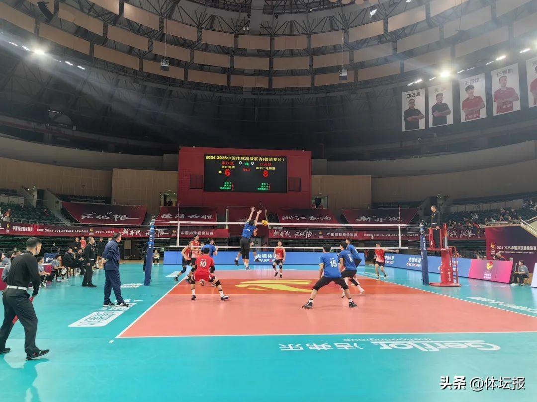 10月31日,2024-2025排超聯賽第二輪比賽,浙江德清男排在主場德清體育中心迎戰對手——南京廣電貓貓男排。最終,浙江德清男排以3比2逆轉險勝對手,收穫兩連勝。