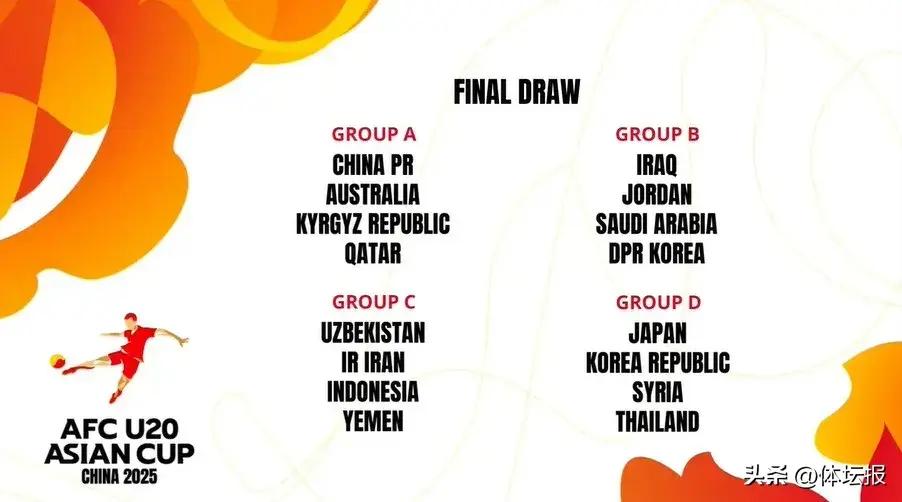 U20亞洲盃分組出爐,東道主中國隊直面挑戰