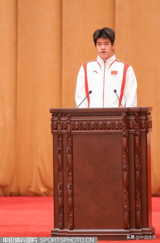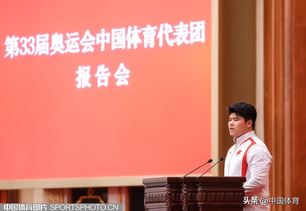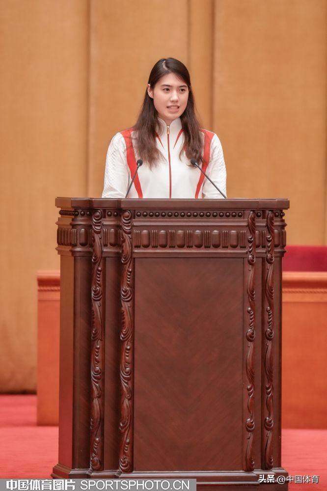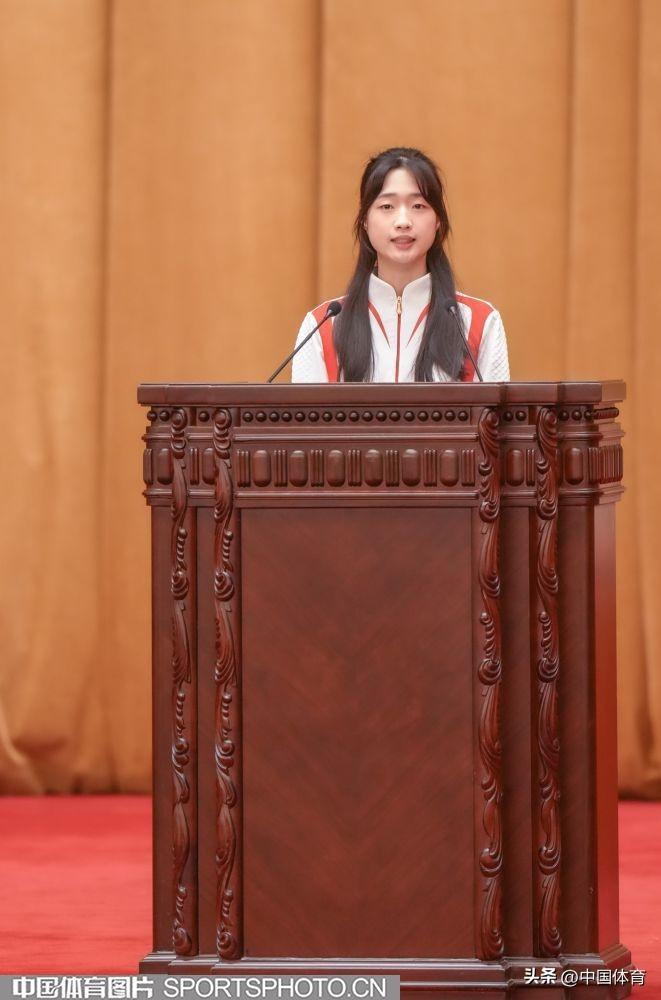 跳水奧運冠軍陳芋汐(中)在報告會上
