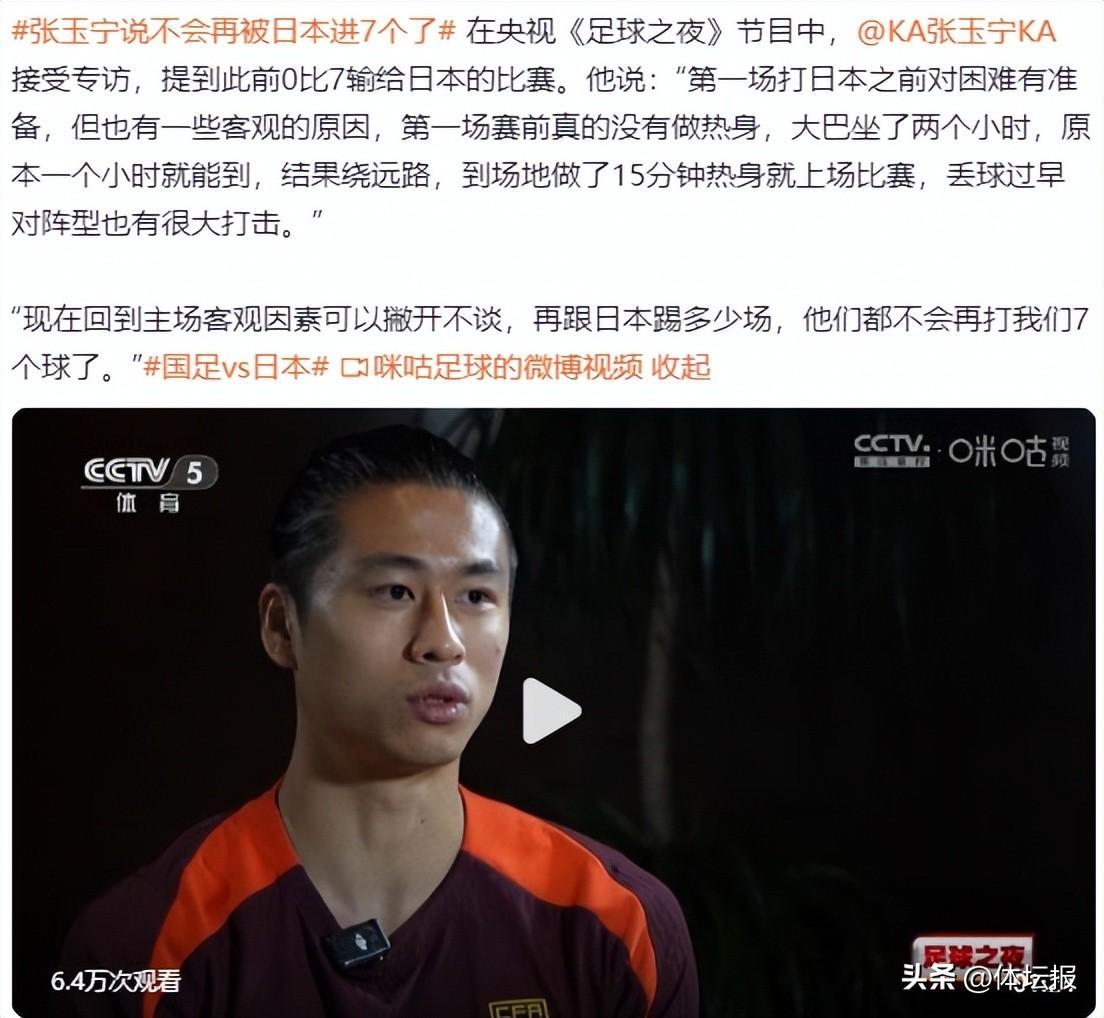 在打完巴林隊接受採訪時,張玉寧就直言“再跟日本踢多少場,他們都不會再打我們7個球了”,換句話說,這樣的比分絕不是兩隊正常發揮的體現。
