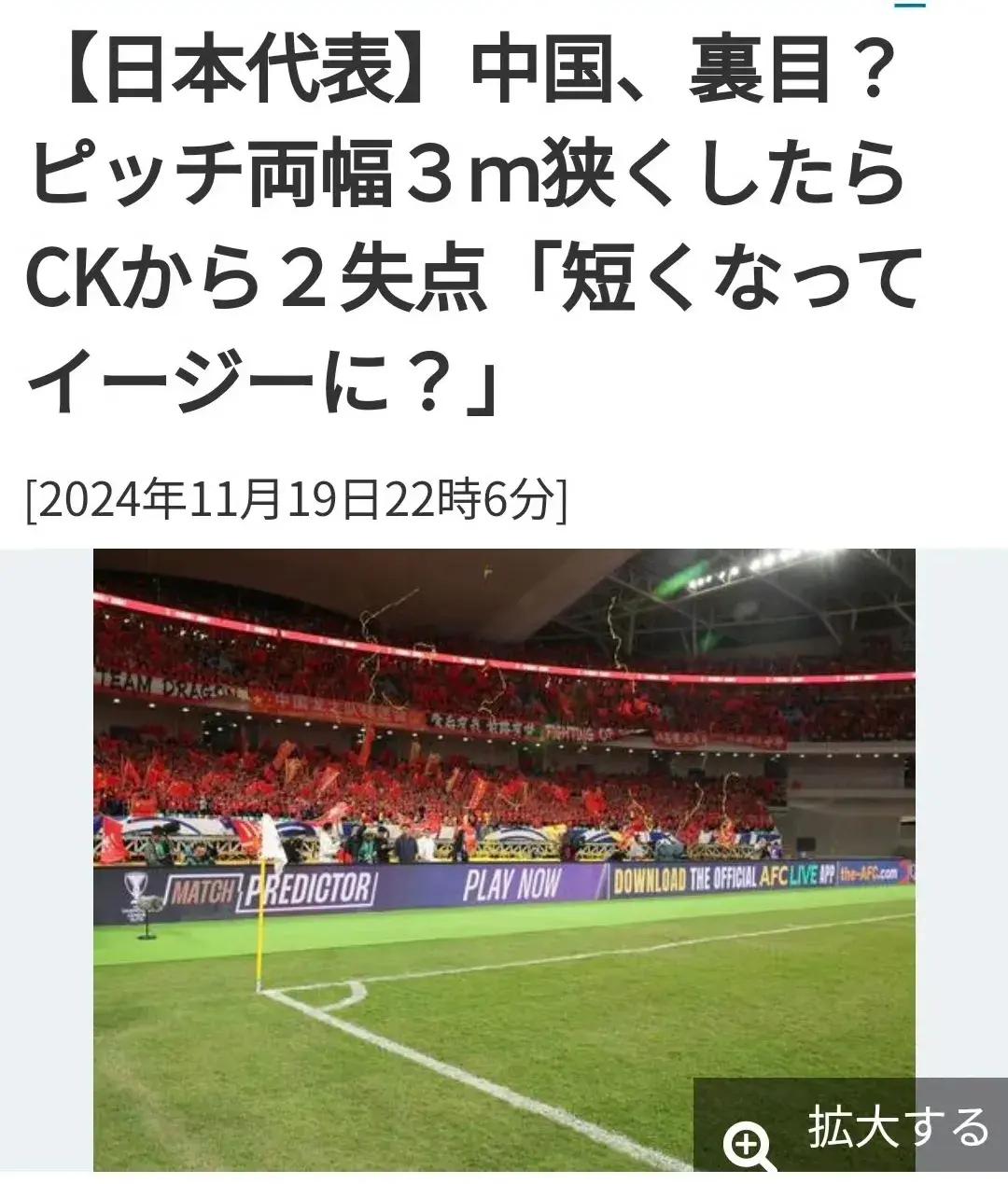 賽後,主力球員久保建英就在接受採訪時直言,比賽場地要比電視上看到的窄很多,有點影響到發揮了,而且中國隊這場增加了滑鏟,並在反擊中得分,或許是因爲球場變窄的緣故,讓中國隊的反擊速度大大提升,甚至要比大多數歐洲俱樂部都快,這讓他有點驚訝。