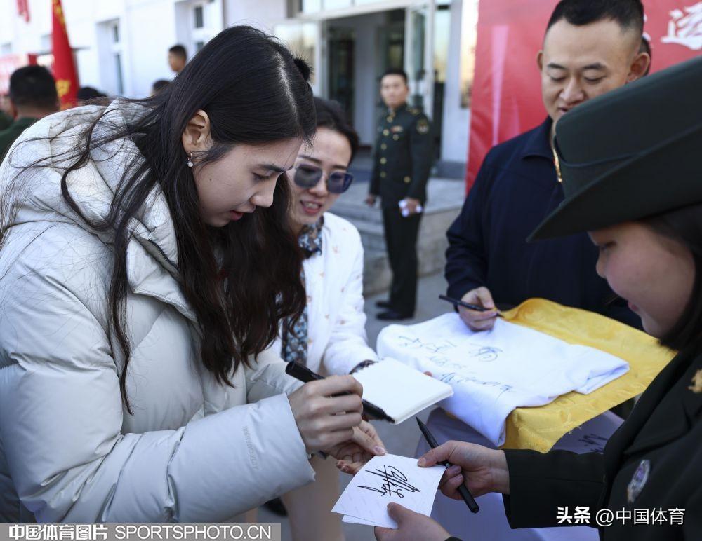 跳水奧運冠軍曹緣爲官兵們簽名留念
