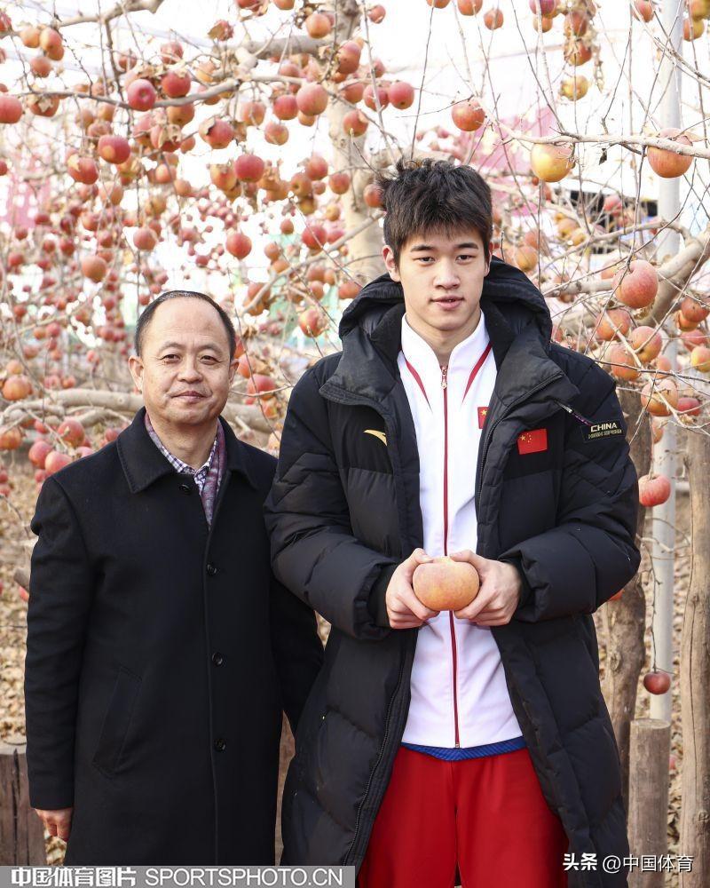 游泳奧運冠軍潘展樂(右)在紅旗坡豐慶園蘋果示範園活動中