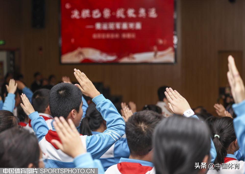 中國體育訊 11月28日,“決勝巴黎·綻放奧運——奧運冠軍面對面”巡迴宣講活動在阿克蘇市天杭實驗學校舉行。(中國體育圖片 張昕 攝)