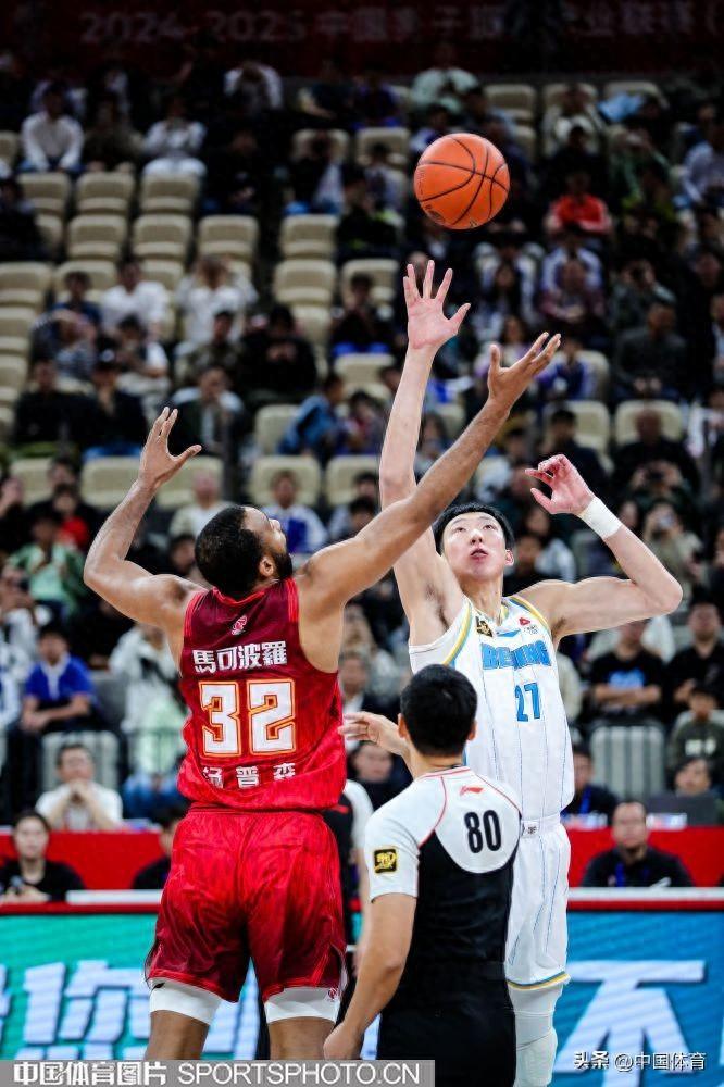 北京北汽隊周琦和深圳馬可波隊湯普森開場爭球