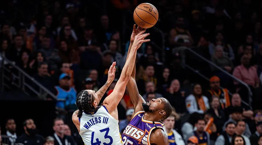 世人都知道科爾熱愛長輪換,喜歡挖掘邊緣球員,控制主力(尤其是庫裏)的出場時間。世人也都知道庫裏36、追夢34,的確要嚴格控制核心的比賽強度。可當第四節打過5分鐘,同樣36歲的杜蘭特都和布克一起出場了,勇士的陣容依然是斯賓塞、沃特斯、希爾德、追夢和魯尼。科爾甚至沒上庫明加和維金斯,更不用說庫裏了。於是滑稽一幕再次上演:沃特斯在邊線試圖單打杜蘭特,一陣左右搖擺之後,沃特斯的幹拔直接被杜蘭特原地抓帽,就地推起了反擊。