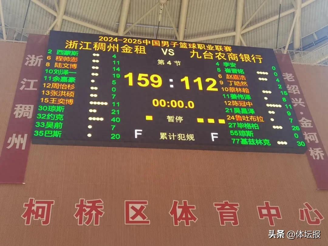 最終浙江稠州金租男籃159:112戰勝吉林男籃,159分也創造了本賽季球隊單場得分紀錄。