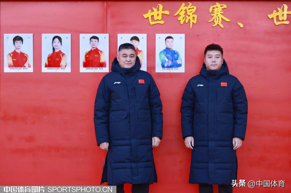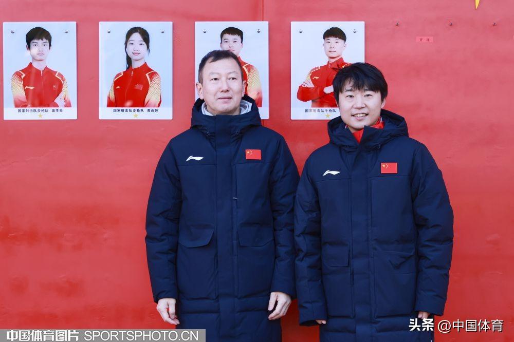 李越宏和指導教練張建偉(左)在洛杉磯奧運週期射擊射箭國家隊“世界冠軍榜”合影留念