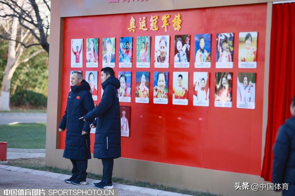 李越宏和指導教練張建偉(左)奧運冠軍榜前合影留念