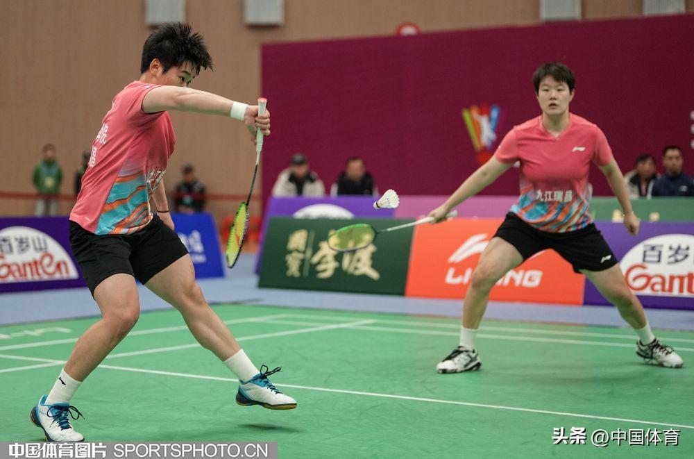 安徽興航張佳晗(左)、張藝曼在女子雙打比賽中