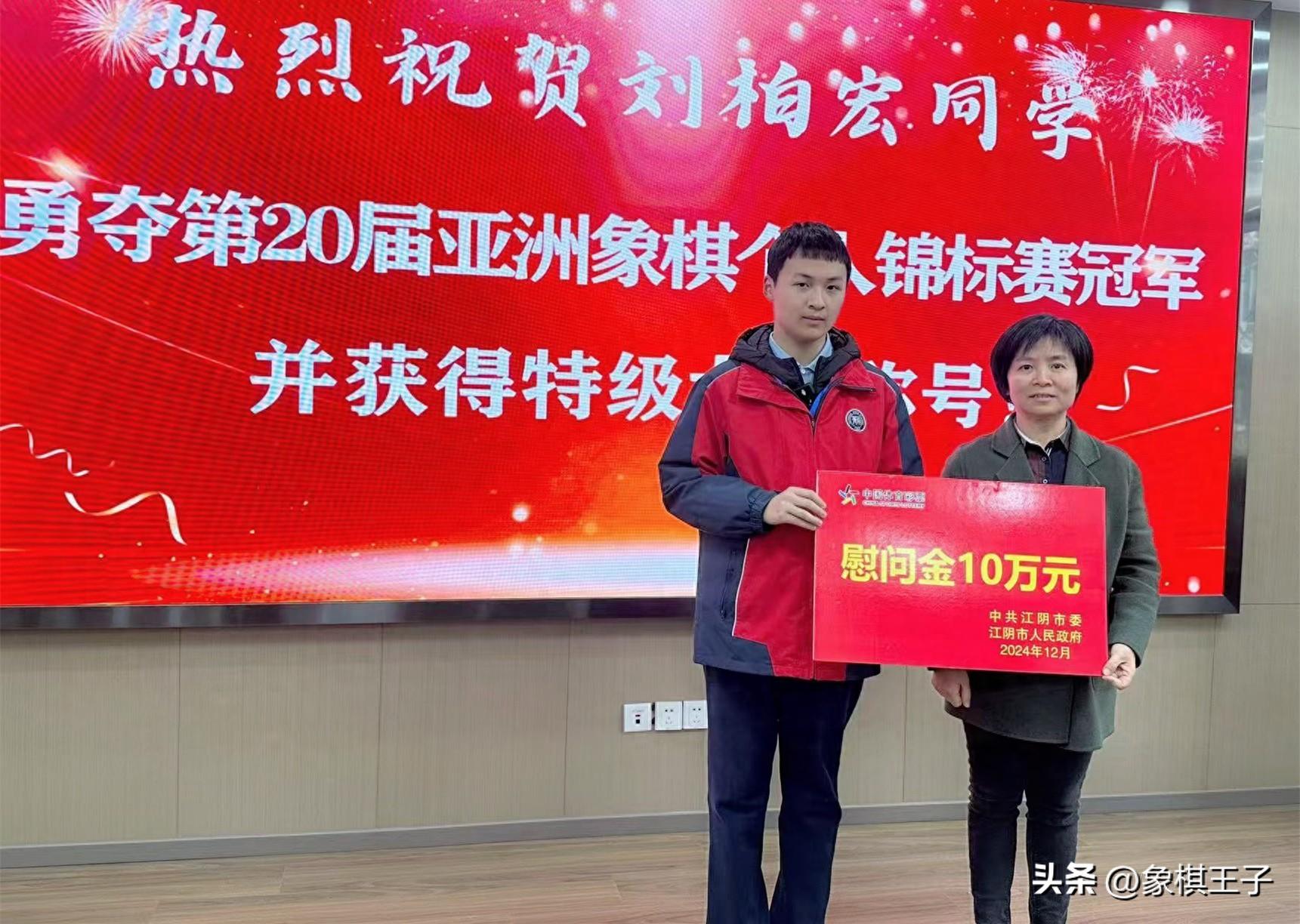 作爲全國象棋之鄉,象棋發展極好的地方,江陰市委、市人民政府向劉柏宏發放了十萬元的慰問金。