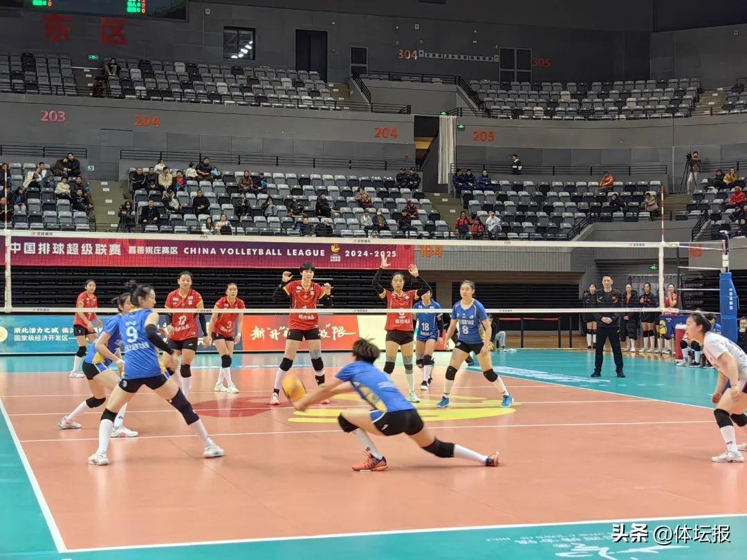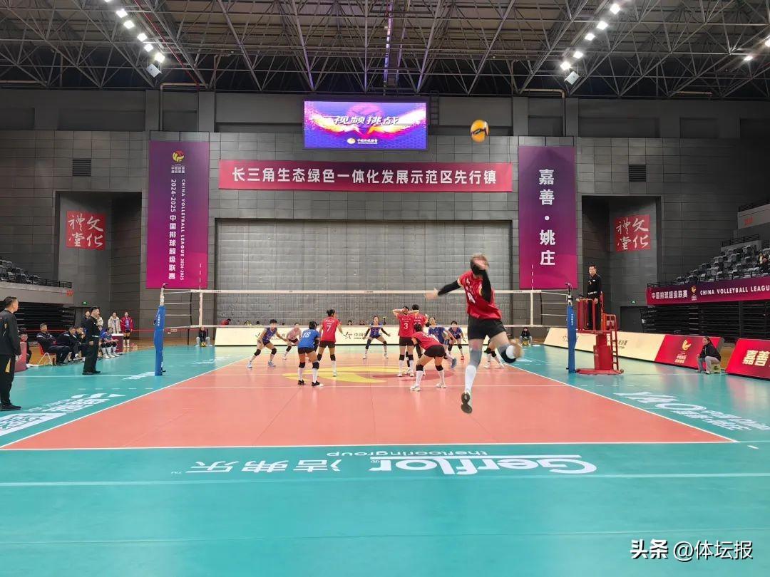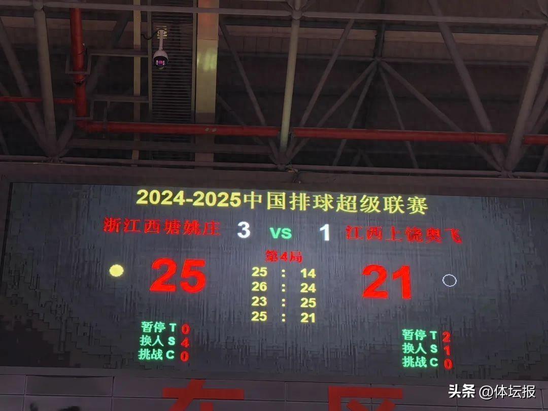 12月10日,2024-2025中國女子排球超級聯賽第十三輪B級常規賽,浙江西塘姚莊女排與江西上饒奧飛女排的比賽在嘉善縣姚莊體育館打響。在本賽季第一階段最後一個主場,浙江西塘姚莊女排大比分3:1勝對手,4局比分爲25:14、26:24、23:25、25:21。