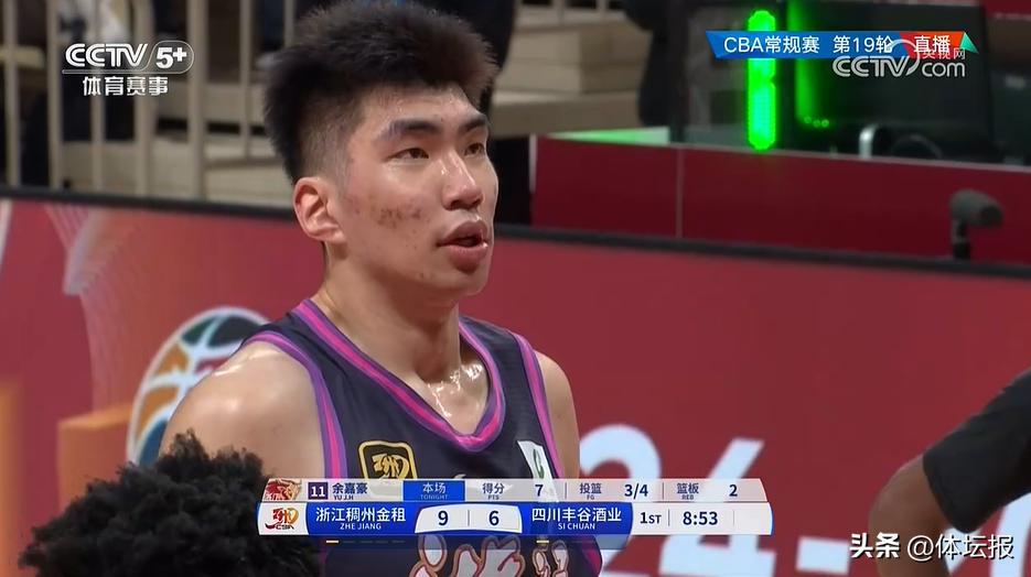 無論是瓊斯和餘嘉豪的組合、還是瓊斯和劉澤一的組合,本場比賽浙江隊使用雙塔戰術,壓制四川隊在內線上的不足。首節比賽結束,浙江33:29領先四川。
