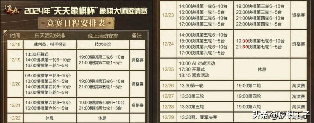 2024棋壇豪氣之戰,年度盛會,2024年“天天象棋杯”象棋大師邀請賽,19-29日在海南海口逐鹿爭霸,決出年終鉅獎,19日下午兩點起,象棋王子抖音號全程直播。