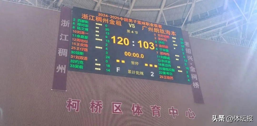 12月23日,浙江稠州金租男籃在上一個主場取得六連勝之後,繼續坐鎮主場迎廣州男籃的挑戰。最終,浙江男籃120:103戰勝廣州男籃,拿下本賽季的7連勝。