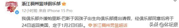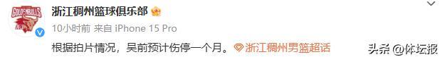 吳前傷停1個月,巴斯回老家帶娃,浙江稠州面臨嚴峻挑戰