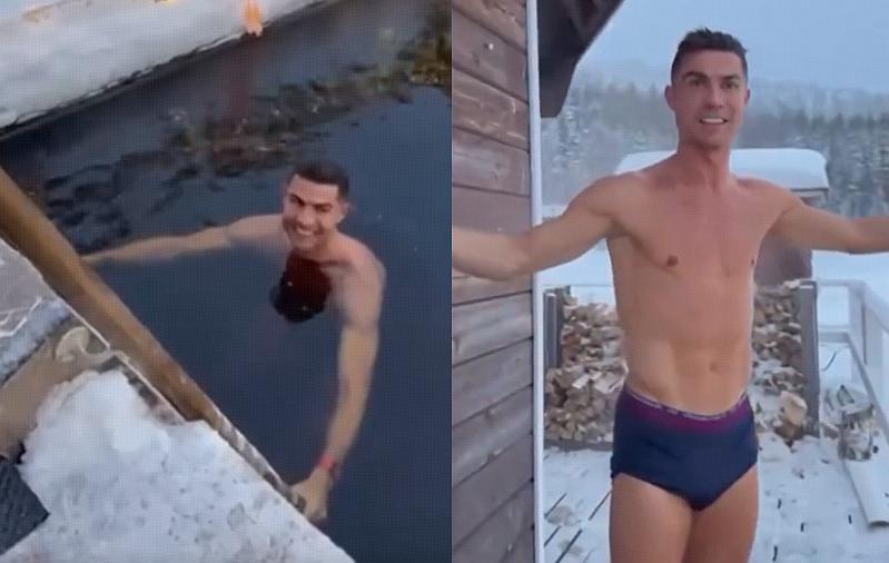 C羅太猛了!雪地脫衣秀6塊腹肌,挑戰泡冰浴,1家7口北歐過聖誕