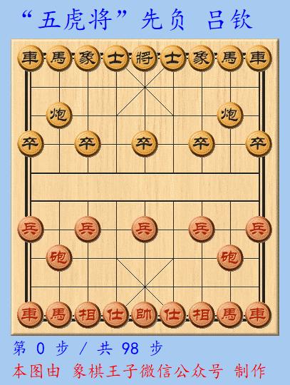 紅方丟仕下來,後防破碎,呂欽殺力強大無比,黑棋車馬炮三子前後策動,聯合進攻,98手以馬炮雙將之威,使紅炮墊馬,黑當下甩炮鎮住中路兼打紅車,紅當場遭絕殺。