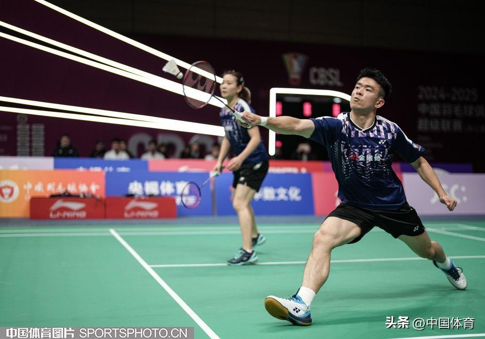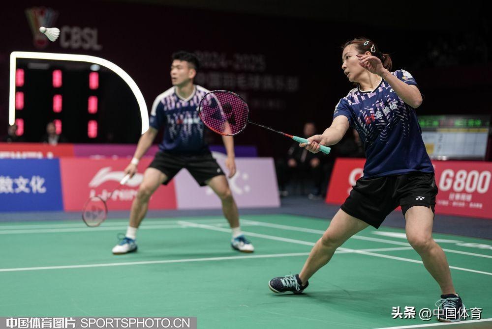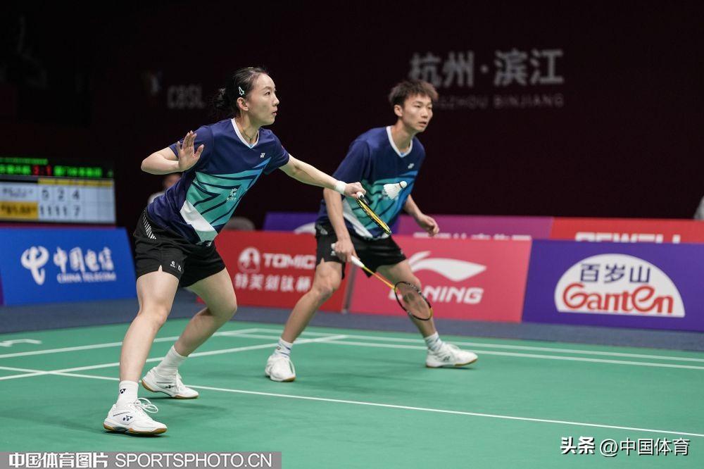 浙江競體俱樂部選手鄭思維、黃雅瓊(左)在混合雙打比賽中