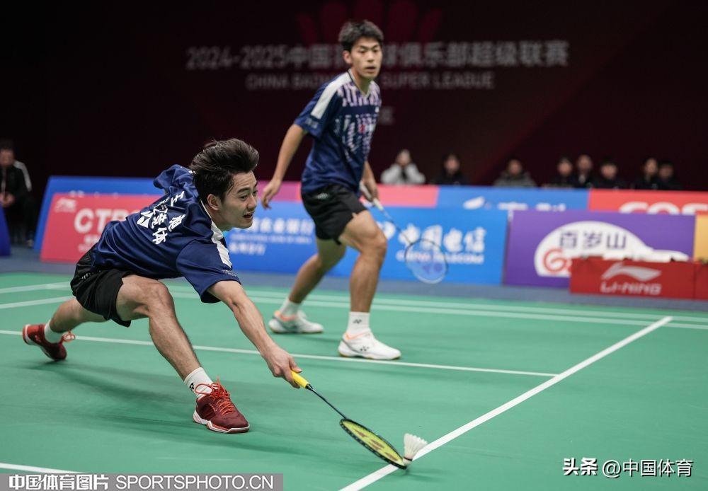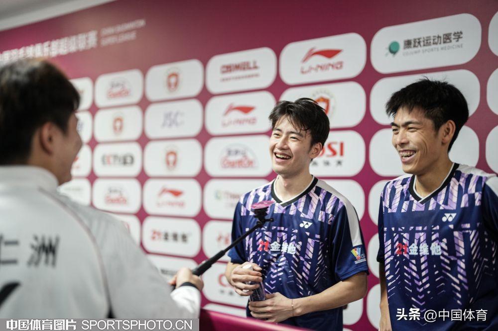 浙江競體俱樂部選手王昶(左)、謝浩南在男子雙打比賽中