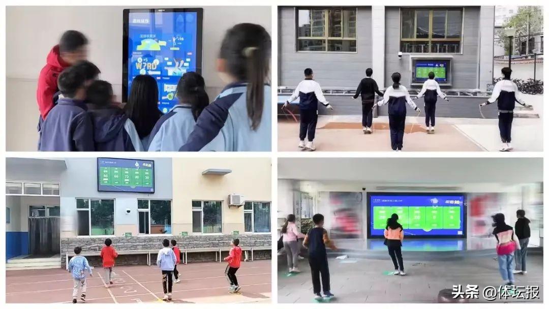 在杭州市濱江實驗小學的體育館中,AI教學屏記錄下每個孩子的跳繩、仰臥起坐、立定跳遠、俯臥撐等運動的每個動作並提供測評報告,指導高效訓練,提升成績;操場上的AI體測屏涵蓋所有體測項目,實時反饋運動成績,測試視頻可以幀級回溯;課間,走廊上的AI體鍛屏前圍滿了孩子,單詞大作戰、數字王國、詩詞大會等50多種需要同時高抬腿、左右跳、開合跳才能完成的趣味項目,成了小夥伴之間新的遊戲和競賽。