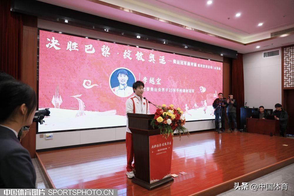 射擊奧運冠軍李越宏與臨沂市體育運動學校的運動員進行交流