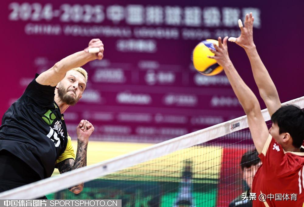 中國體育訊 1月5日,2024-2025賽季中國男子排球超級聯賽A級季後賽第一階段第17輪爭奪結束。北京光彩體育館內,北京北汽坐鎮主場1比3不敵河北保定沃隸。(中國體育圖片 王憲民 攝)