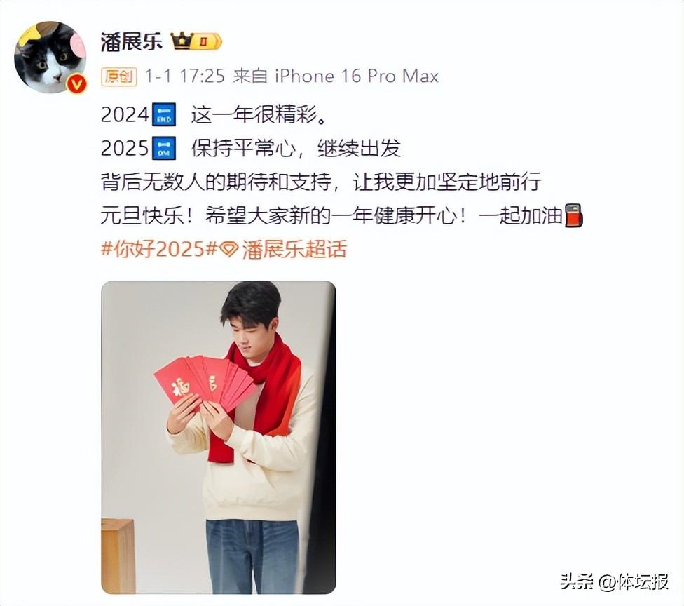 2025年新年第一天,潘展樂在個人社交媒體上表示:“2024這一年很精彩。2025保持平常心,繼續出發。”