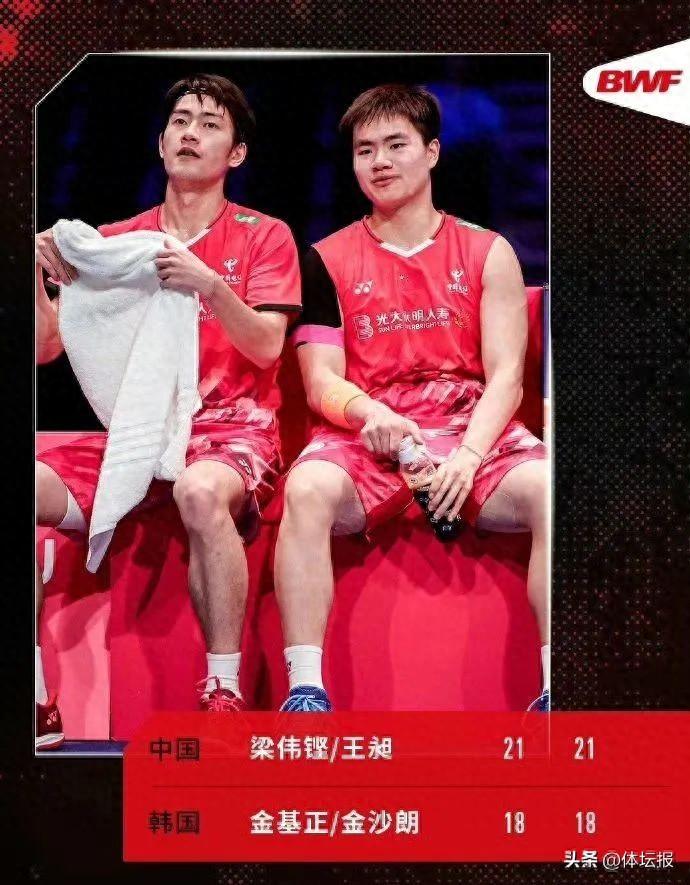 韓國組合金基正/金沙朗此前從未與“梁王”交手,雖然年紀偏大身體素質稍遜,但二人豐富的經驗還是給梁偉鏗/王昶帶去一些麻煩。他們通過調動和挑高讓“梁王”頻繁出現失誤,好在梁偉鏗/王昶並未丟失自己的節奏,有驚無險地以兩局21:18晉級。
