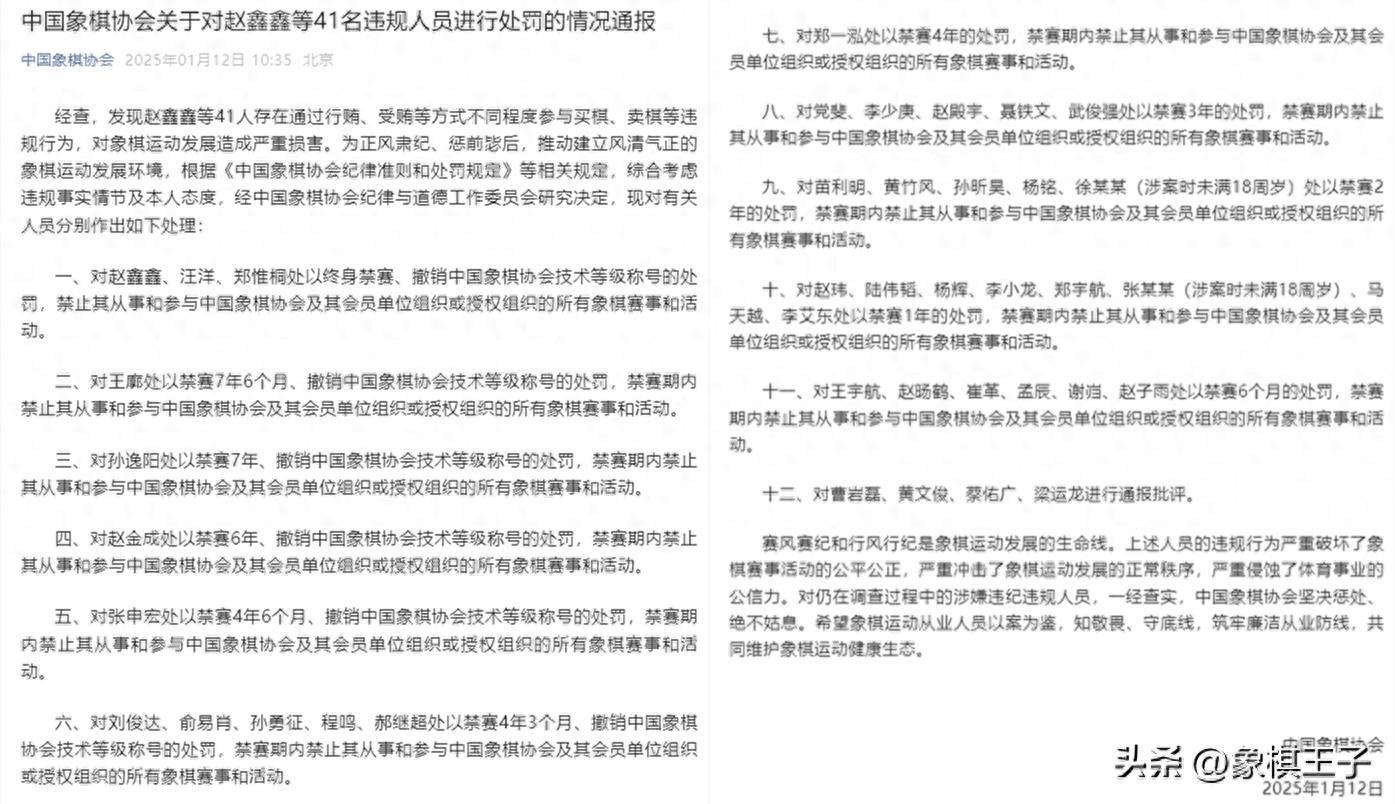 象棋王子:悲痛!趙鑫鑫汪洋鄭惟桐41人終身禁賽處罰,天一啊