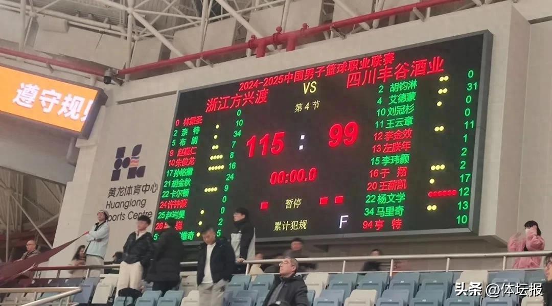 1月18日晚,浙江方興渡時隔8天回到主場,再度迎來四川豐谷酒業的挑戰。最終,方興渡115:99再勝四川,依舊保持主場不敗。