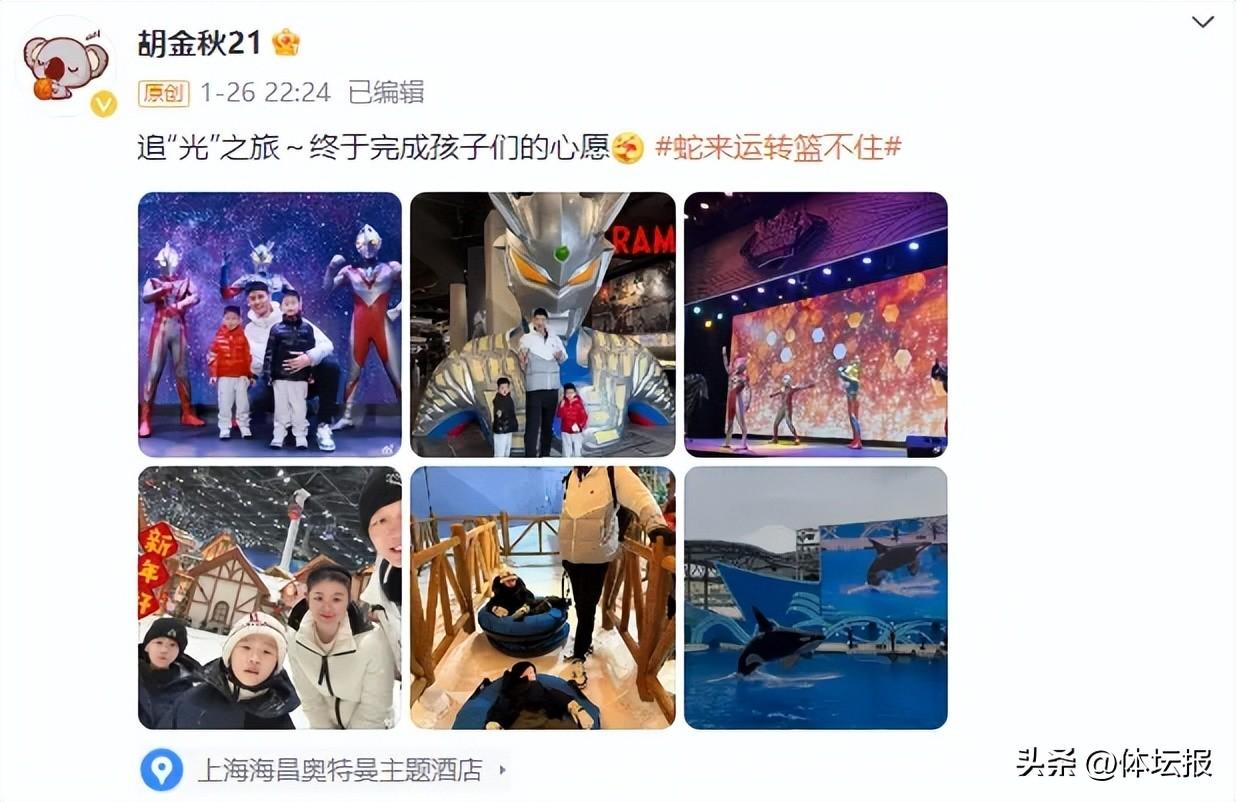 同樣要去國家隊報到的胡金秋,1月26日他在社交媒體曬出與妻兒“打卡”奧特曼的照片,表示“終於完成孩子們的心願”。