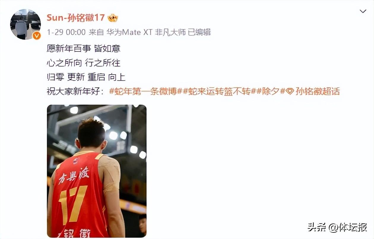 “主要還是利用這個假期恢復傷勢。”帶傷的孫銘徽利用春節假期,先回吉林老家跟家人們團聚,隨後將打針,治療肩膀的傷勢。