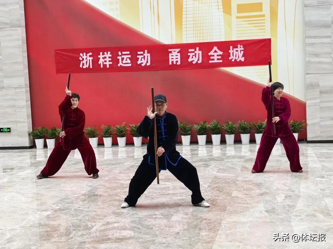 參與者們集體演練楊式85式太極拳,還以楊式太極拳、楊式51式太極劍、楊式太極十三刀三項傳統楊式太極爲基準演練各招式,“武林高手”相互切磋,現場熱鬧非凡。