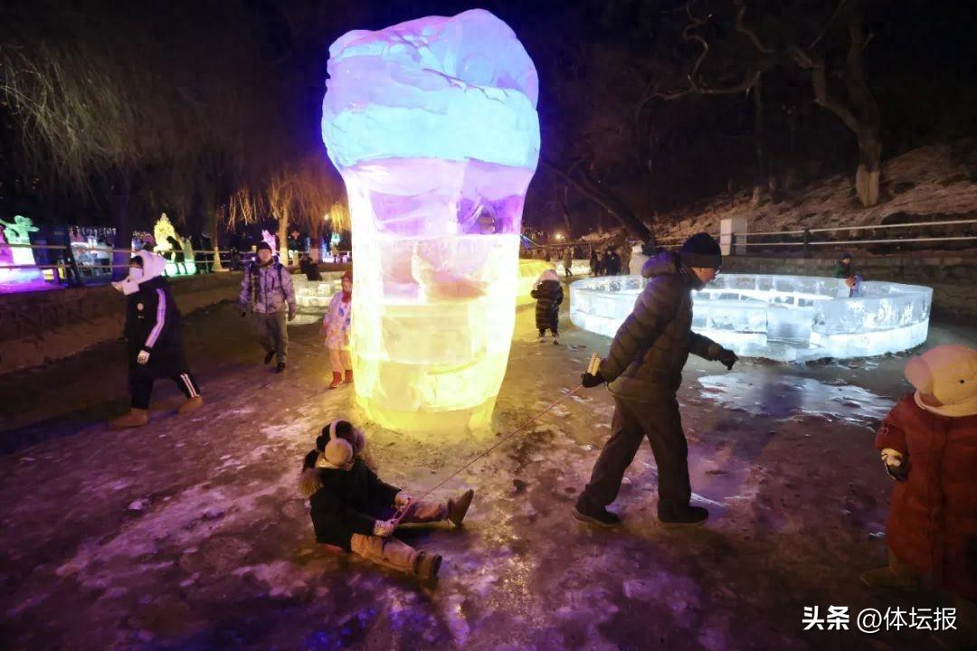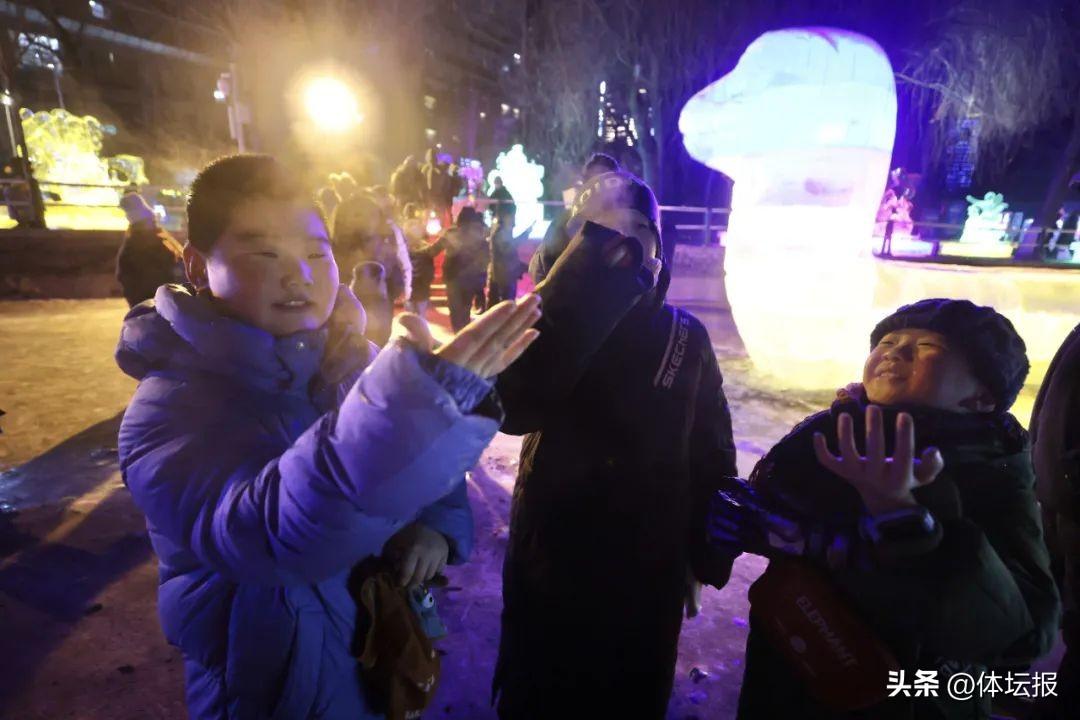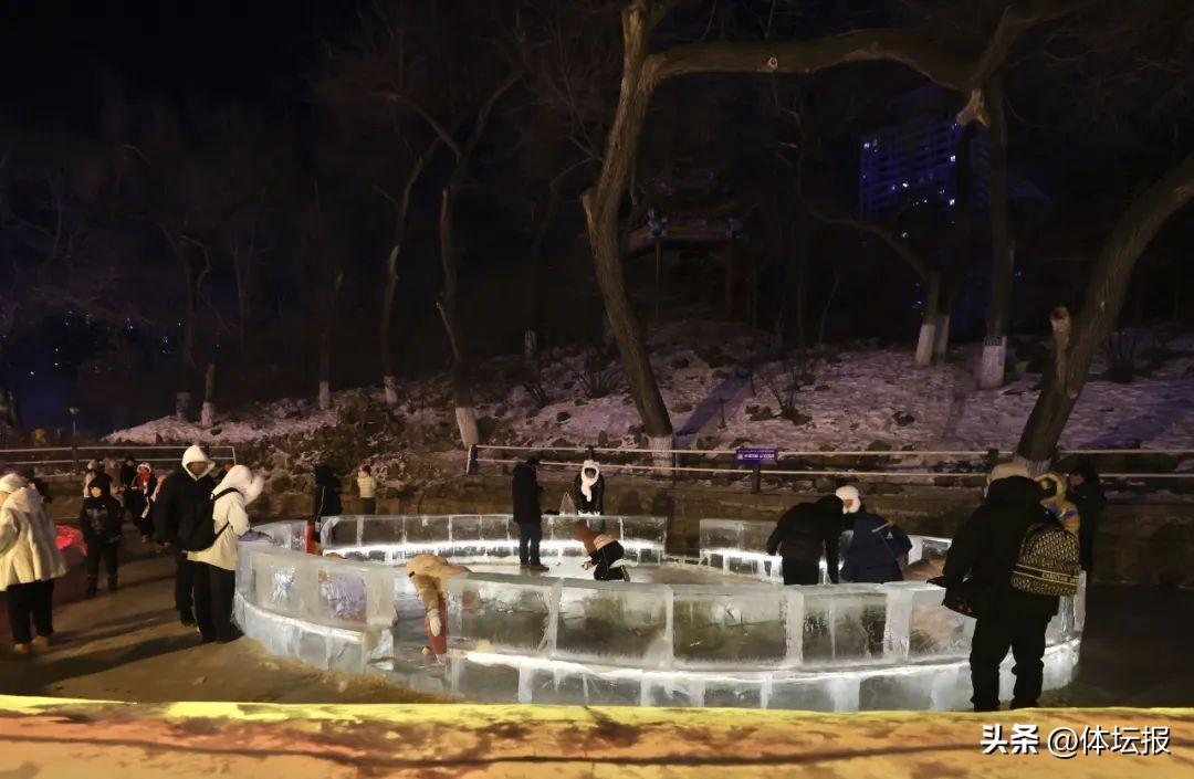北方的孩子冬季玩什麼?走進兆麟公園,映入眼簾的是第51屆冰燈藝術遊園會的璀璨冰雕。熊貓、蛇形冰雕在陽光下折射出七彩光芒,夜晚華燈初上時更顯夢幻。但最引人注目的,是公園內沸騰的“冰雪遊樂場”——孩子們或在冰面飛馳,或揮動鞭子抽打冰尜(陀螺),或三五成羣推着冰車嬉戲追逐。