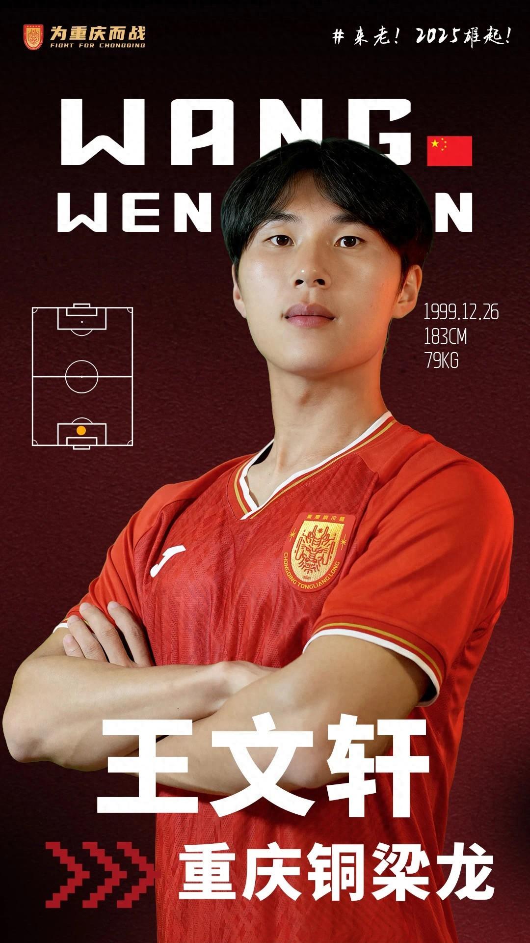 北京時間2月26日,重慶銅梁龍官方宣佈,原廣州隊後衛王文軒加盟俱樂部。