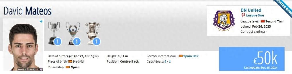 德轉顯示,馬特奧斯爲自由身加盟定南贛聯。目前球員的身價爲5萬歐元。