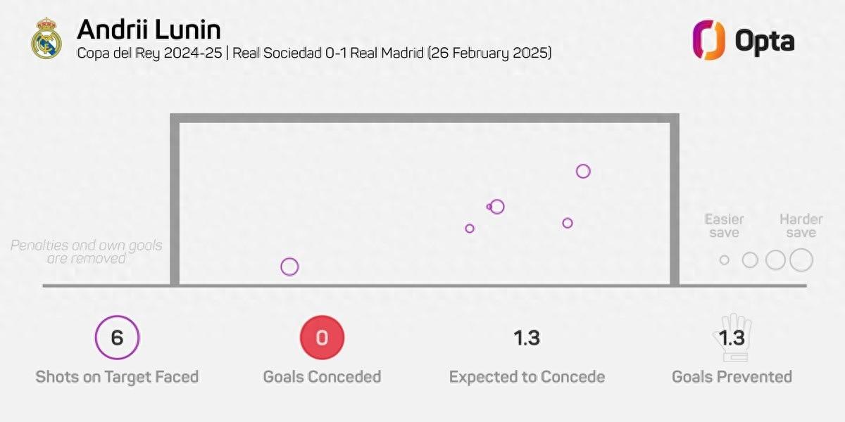 國王杯半決賽首回合,皇家馬德里客場1-0擊敗皇家社會,皇馬門將盧寧奉獻6次撲救,爲皇馬門將本賽季沒丟球比賽中最多。