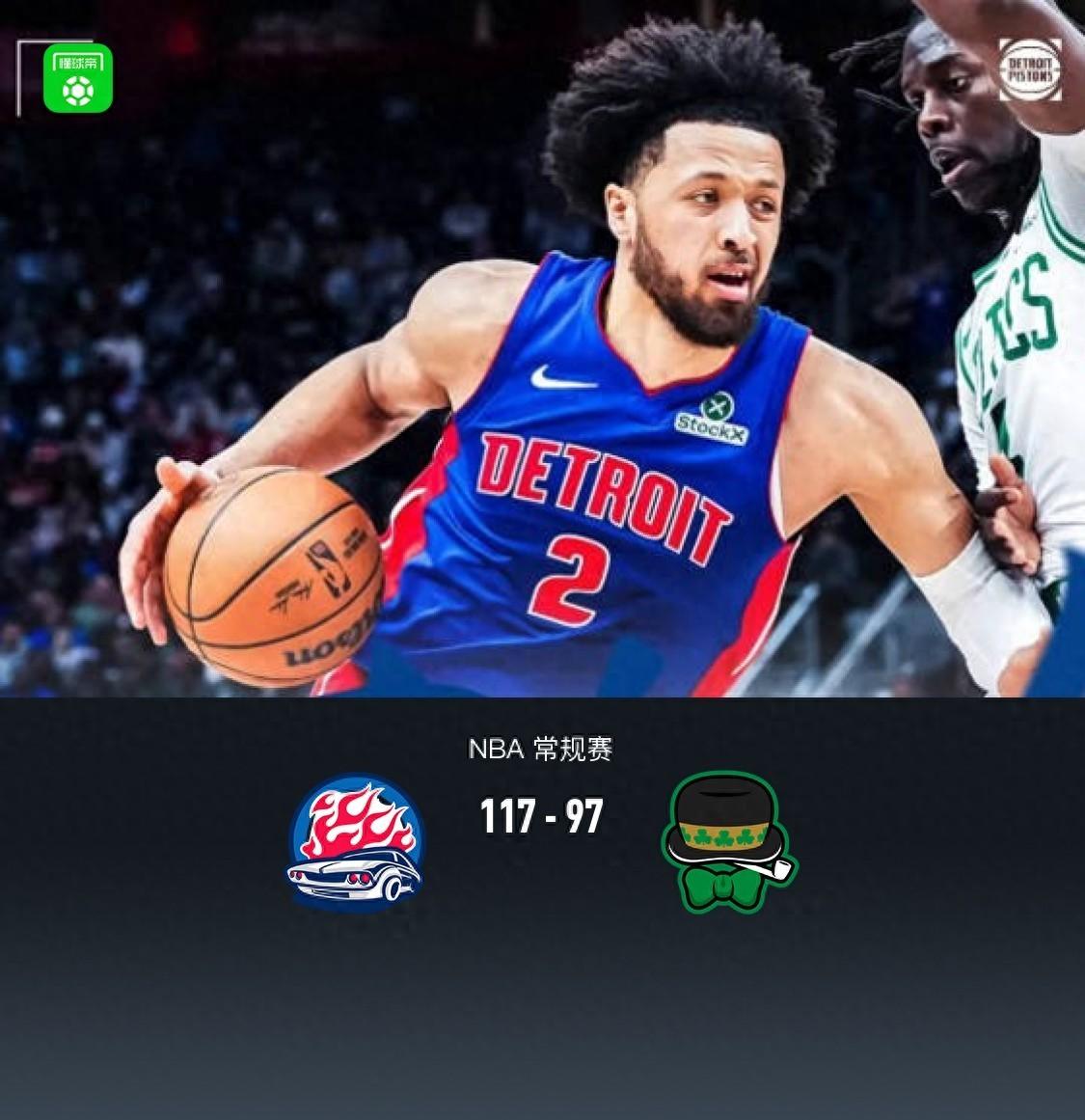 第四節活塞比斯利拿下8分,凱爾特人德里克-懷特拿下5分,最終活塞117-97戰勝凱爾特人