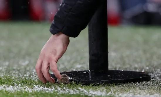 據報道,在曼聯與伊普斯維奇的比賽開始前,有人發現老特拉福德球場上出現了一隻老鼠,一名工作人員被迫把老鼠撿起來然後帶走。