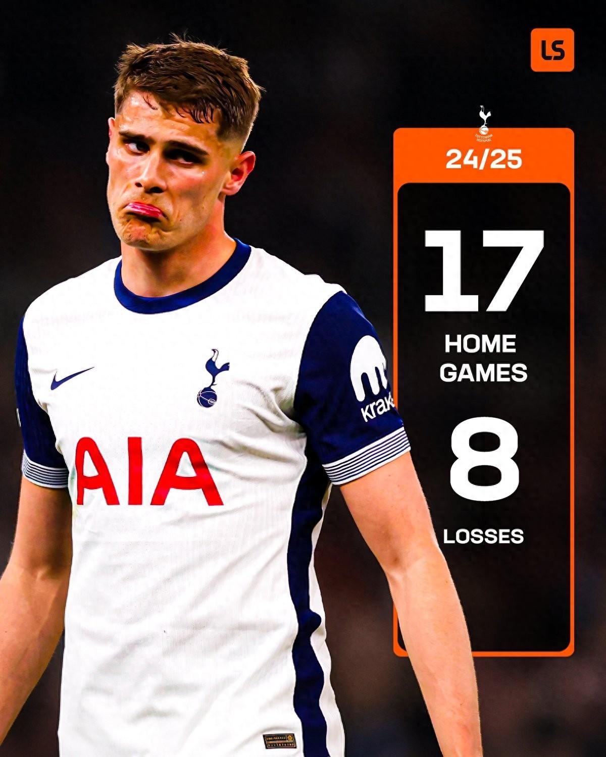 本賽季,熱刺主場17賽8負,已經遭遇了38場制聯賽中的最多主場失利,但再輸兩場就會超過44場制賽季中最差的總失利紀錄。