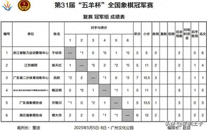 這樣,呂欽以7分奪取冠軍組第一,昂首入圍決賽階段,此間,除了輸給師弟許銀川一局,其他三勝一平,特別是最後時刻三連勝,力挽狂瀾,王中王本色,宗師風采,盡顯無疑。