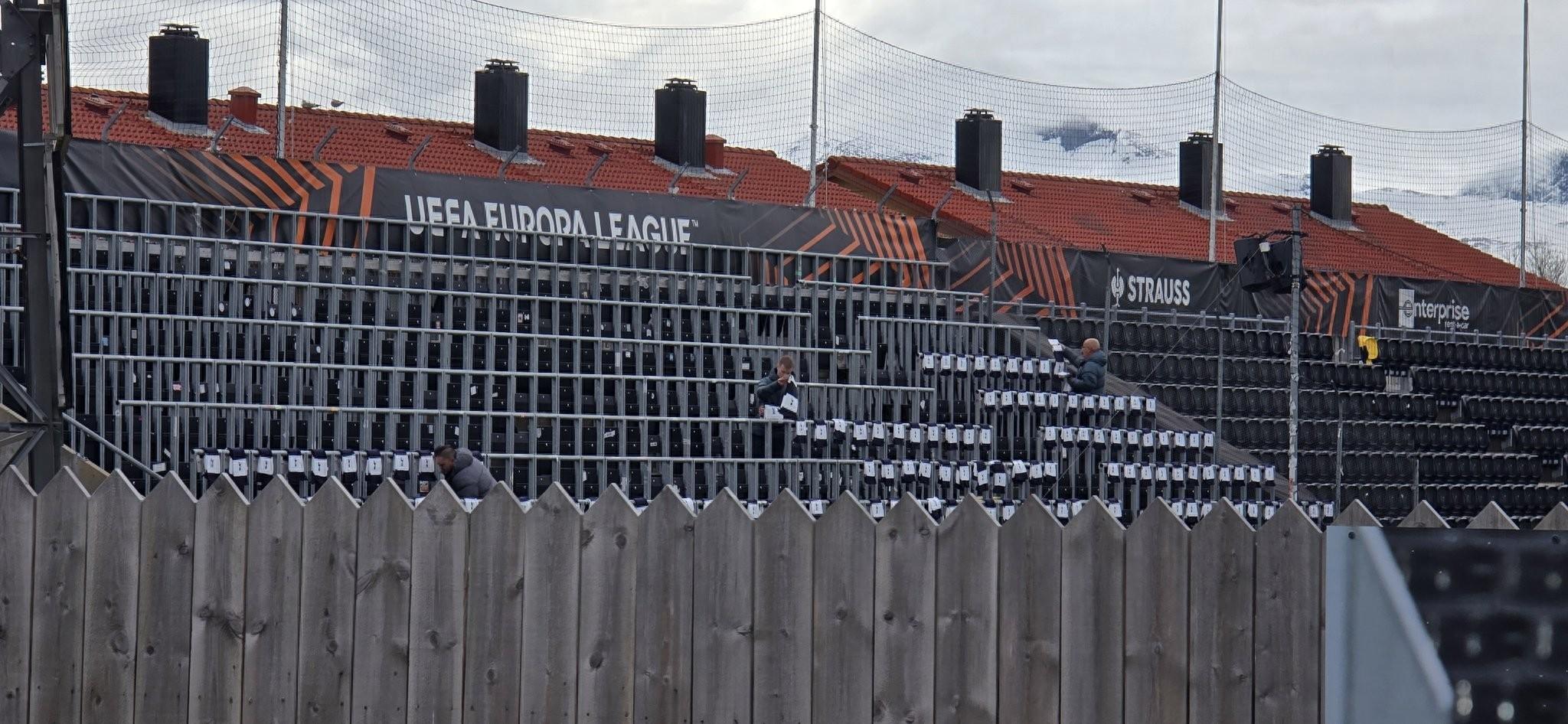 今晚的歐聯杯半決賽開始前,熱刺的工作人員在阿斯普米拉球場的客場看臺上爲熱刺球迷擺放了助威圍巾。