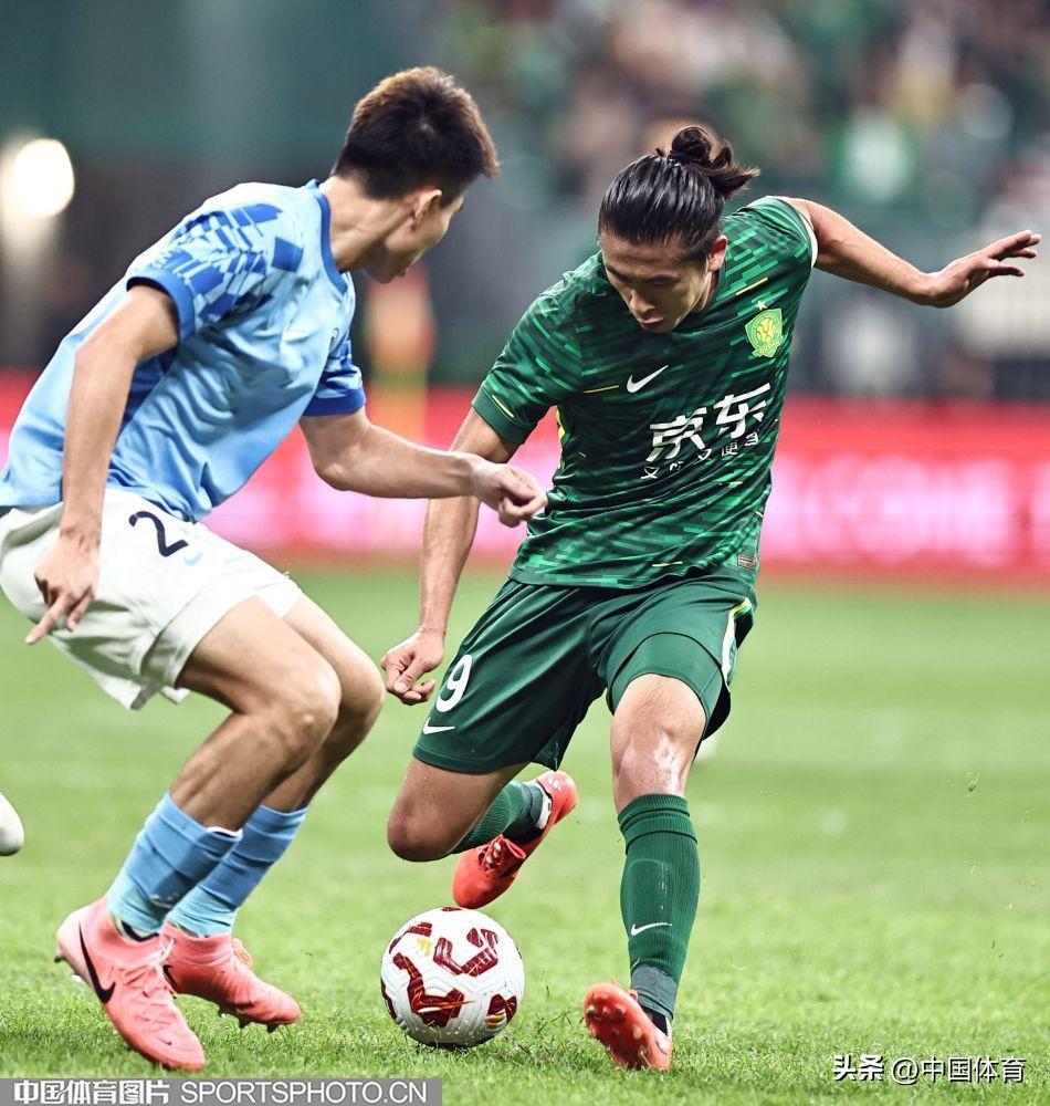 北京國安隊張玉寧帶球突破