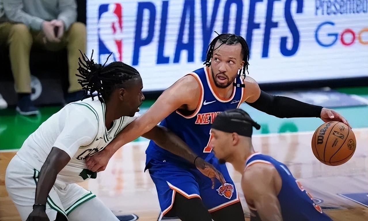 波士頓花園球館,東部半決賽首戰常規時間最後1秒,唐斯沒有出手空間,但賈倫·布倫森反跑晃開霍樂迪,空切到了籃下。人到球到,在霍福德衰老的指尖之上,布倫森拋投出手,球打板後向籃筐飛去,涮一圈又出來。