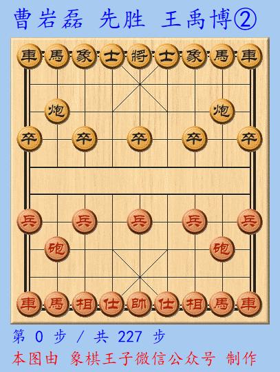 王禹博白失一子,局勢再度由勝轉敗,曹巖磊多子下來,殺入雙馬兵單仕對炮卒單缺士,血戰227手強悍致勝。